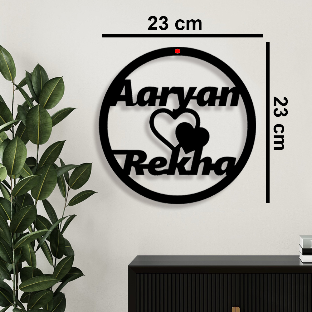 “Elevate Aaryan and Rekha’s love story with our exquisite Couple Name Plate hanging for the wall. Crafted with precision, this bespoke piece beautifully intertwines their names, symbolizing their unique bond. The elegant design adds a touch of sophistication, transforming any space into a canvas of love. This personalized treasure becomes more than just decor; it’s a radiant testament to their journey. Cherish every glance at the Couple Name Plate—a heartfelt reminder of a love that stands the test of time, gracing the walls with warmth and a visual celebration of their enduring commitment.”
