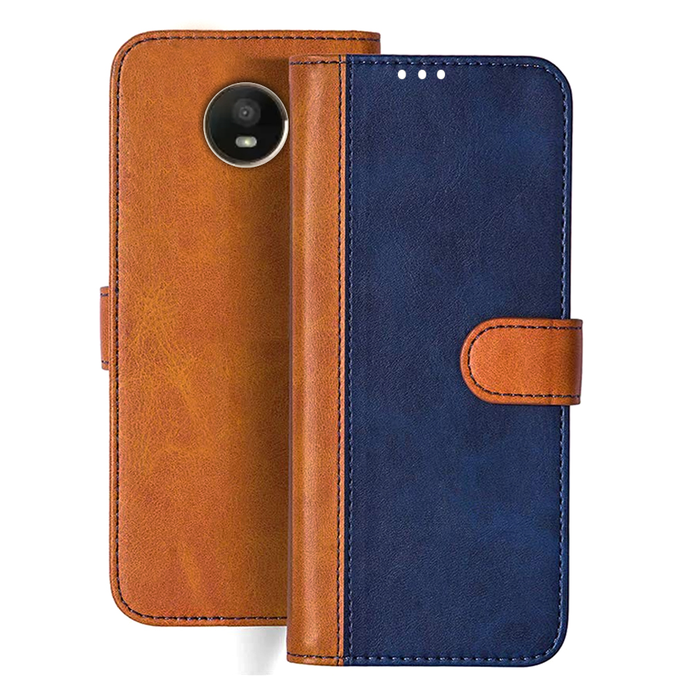 Moto E4 flip cover | XT1766 flip cover | Blue, Brown Design
