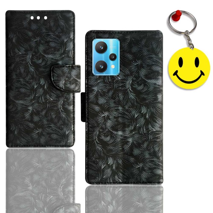 Black, leaf flip cover Realme 9 Pro / RMX3471 Black, leaf Flip case – Premium Looks – Glistening deluxe leather surface provides your phone with a rich sophisticated look Anti-Slip – Anti slip textured surface for better grip on sides enables better handling of your device Perfect Cutouts – Full access to all features like cameras, speaker, ports and buttons Easy Closure & Convenient Stand – Gentle but firm magnetic clasp to secure the case intact and easy opening & convenient stand for Wallet Stand case enables hands free movie watching or video chatting in landscape mode. FREE SMILEY KEYCHAIN
