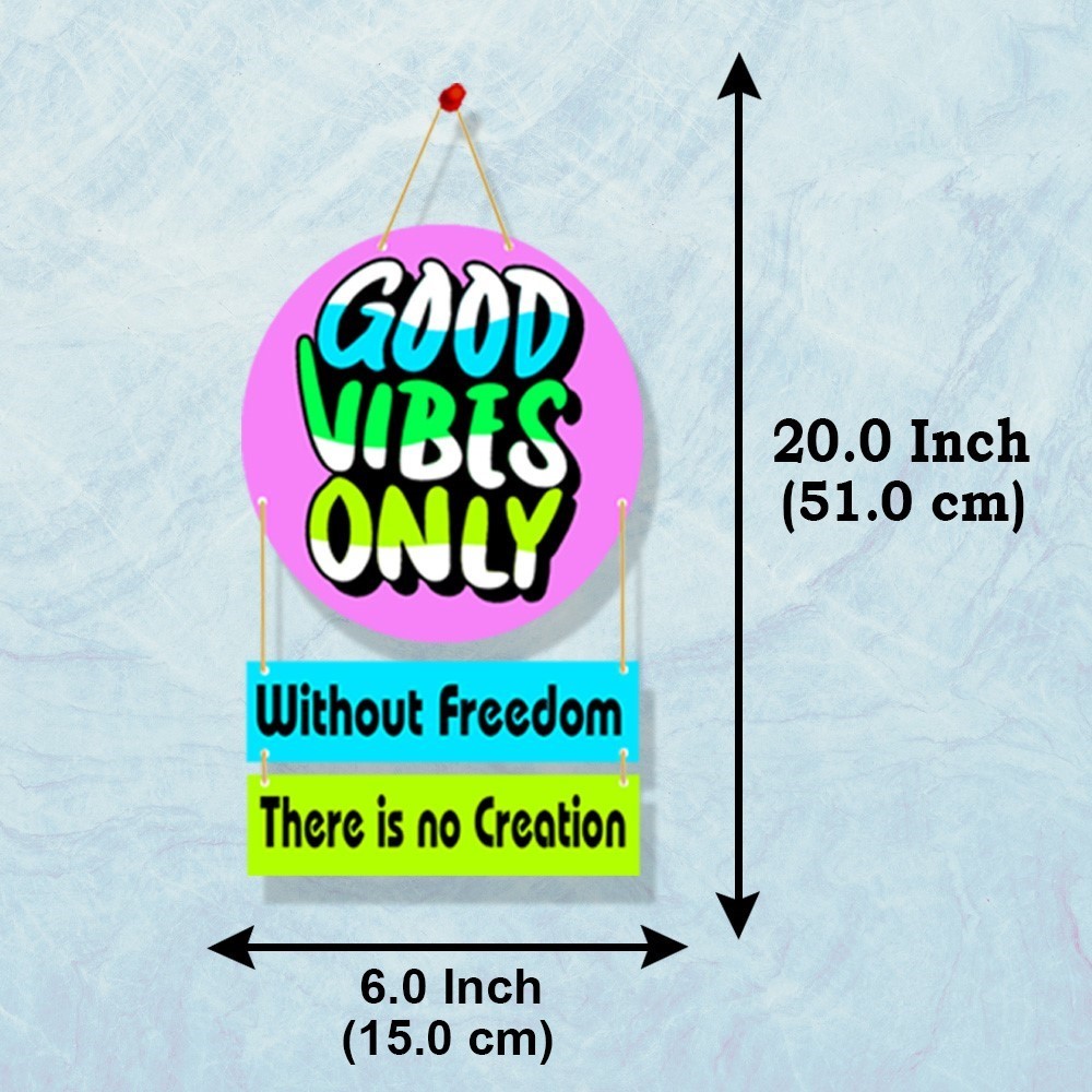 ◈ Wall Hanging -This pretty wall hanging is made of wood and comes with a stylish chain. With it’s bright print and positive message it looks wonderful on the walls of your home or office & Cabin or Living Room. Good Vibes Only Wall Hanging For Wall Decor, Wall Sulpture For Home, Office, Living Room, Study Room, Cafe Wall Decor Stylish. . Our collection offers various themes and sizes to suit your style. It’s not just a wall hanging, it’s a statement of your devotion and individuality. Perfect as a gift for friends and loved ones too. Explore our collection now!